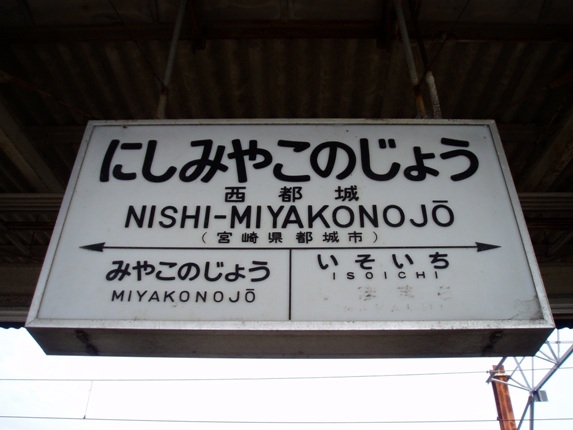 午後3時前に西都城駅に到着。駅の中に入ってびっくり。駅構内の雰囲気が国鉄そのもの。国鉄がJRになってからすでに18年、ここまで国鉄独特の雰囲気を漂わせる駅は珍しい。切符売り場には「自動きっぷうりば」の文字。今や自動券売機が当たり前となっているので、この表記は時代を感じさせる。また、「きっぷの買い方」のところには「500円札は使えません」と。だが駅構内には売店がなく、待合室すら閉鎖されていた。駅弁は駅前の店で販売されている。