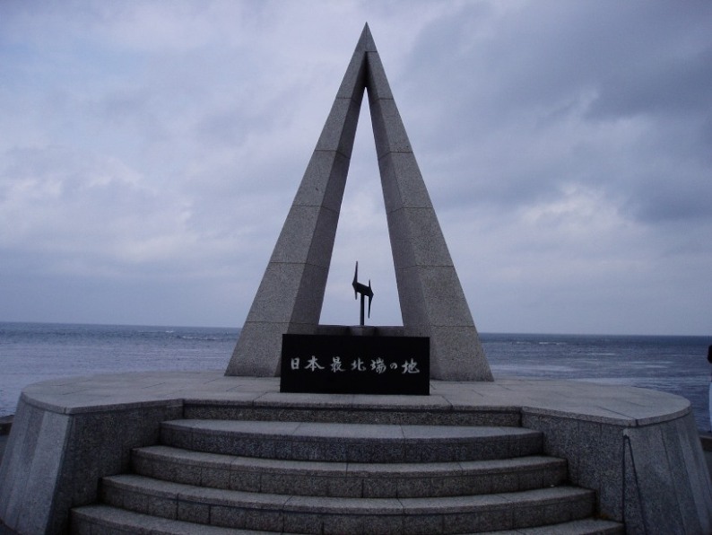続いて野寒布岬へと向かった。シーズンオフのため、ライダーは飲食代10%オフの店などもけっこう閉まっていた。木の札があるだけでこちらは閑散としていた。風が異様に強かった。そして北海道本島最北端の宗谷岬へ向かった。その途中、バスが迂回をして宗谷岬肉牛牧場の中を通った。ここは1500haの大牧場。この中の道路を通り、宗谷岬に到着。よく写真で見る宗谷岬の石碑や間宮林蔵の立像を撮ったりして、お土産屋で日本最北端到着証明書を買った。ここは北海道本島の最北端ではあるが、決して日本最北端ではないんだがなあ…。このお土産屋の奥に「流氷館」という、流氷を展示してある施設がある。施設内はマイナス11度なのですぐに出てきた…。ここと別のお土産屋で枝幸牛乳という牛乳を飲んだが、普段飲んでいるものより味が濃かった。「えさし牛乳」と言われた時に、「江差」が真っ先に思いついた…。宗谷岬では20分ぐらいしか行動時間がなかったのが残念。