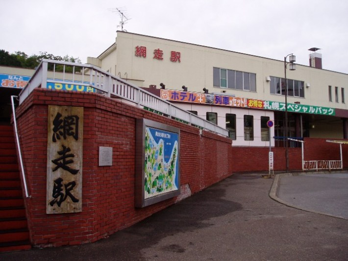 途中、上川・遠軽・北見で目が覚めた。遠軽はかつて名寄本線と石北本線の合流駅だったので、かなり大きな駅だった。路線が廃止された関係でこの駅では列車はスイッチバックをする。起きたのは女満別到着直前。夜が明けてきていた。網走には定時6時15分に到着。外に出るとかなり寒い。今回の旅行ではほぼずっとTシャツの上にジャージを羽織った格好で充分だったが、網走の朝だけはもう1枚着た。次の列車まであまり時間がないので、とりあえず駅の看板の写真を取って立ち食いそばを食べた。この看板は国鉄時代に網走駅長が、網走刑務所を出て列車で旅立つ受刑者が横道にそれないようにという意味を込めて縦書きに書いたらしい。 網走からは釧路行きの普通4725Dに乗車。列車は固定クロスシートのキハ54。オホーツクからの乗り換え客が多く、車内はけっこう混んでいた。網走を出て少しした後、砂浜につりざおが大量に刺してあった。こんな早朝から釣りとはご苦労様だ。知床斜里駅でけっこう降り、この駅を境に車窓から見えるのはオホーツク海から畑へと変わった。知床斜里の駅は改札の外が喫茶店になっており、北海道の鉄道が充実していた時期の路線図があった。知床斜里でかなり降りたのでどんどんすいていくのかと思ったら、また客が増えていき、標茶や釧路湿原あたりでは立ち客もいた。天気があまりよくなかったということもあり、釧路湿原の景色はあまりきれいに見えなかった。